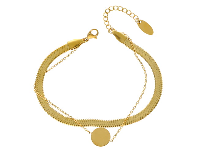 Ta subtelna bransoletka to kwintesencja elegancji, która czerpie z prostoty. Złoty, delikatny łańcuszek oplata nadgarstek jak promień słońca, podczas gdy gładka zawieszka w kształcie krążka dodaje jej harmonii i klasy. Idealna na każdą okazję, by podkreślić Twoją delikatność i wyrafinowany gust.