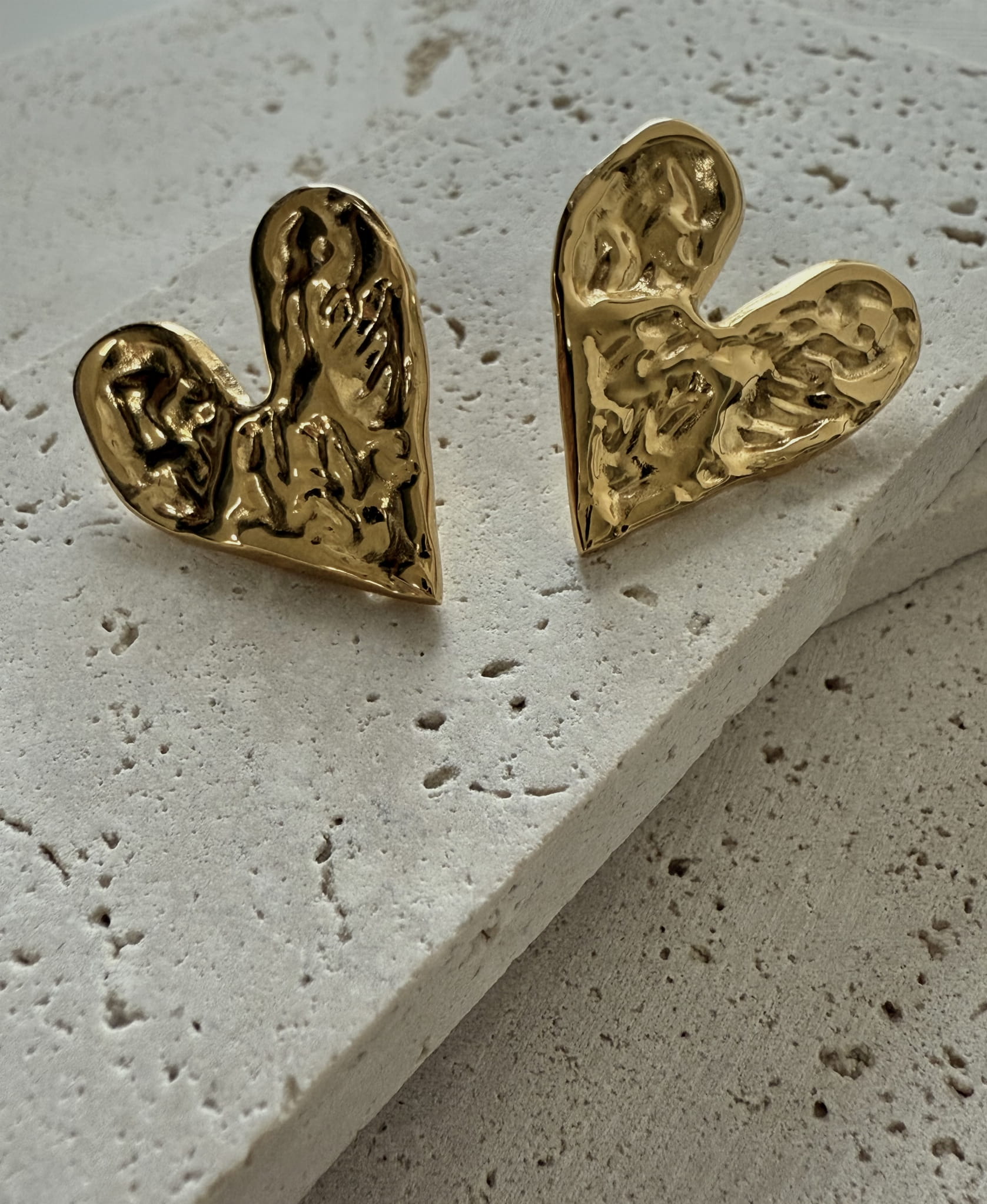 Kazda rysa, kazde przetarcie i nieregularna faktura tych serc opowiada historię siły, piekna i autentyczności.Inspirowane surową elegancją i sztuką niedoskonałości, kolczyki te przypominają, że prawdziwe piękno tkwi w unikalności.