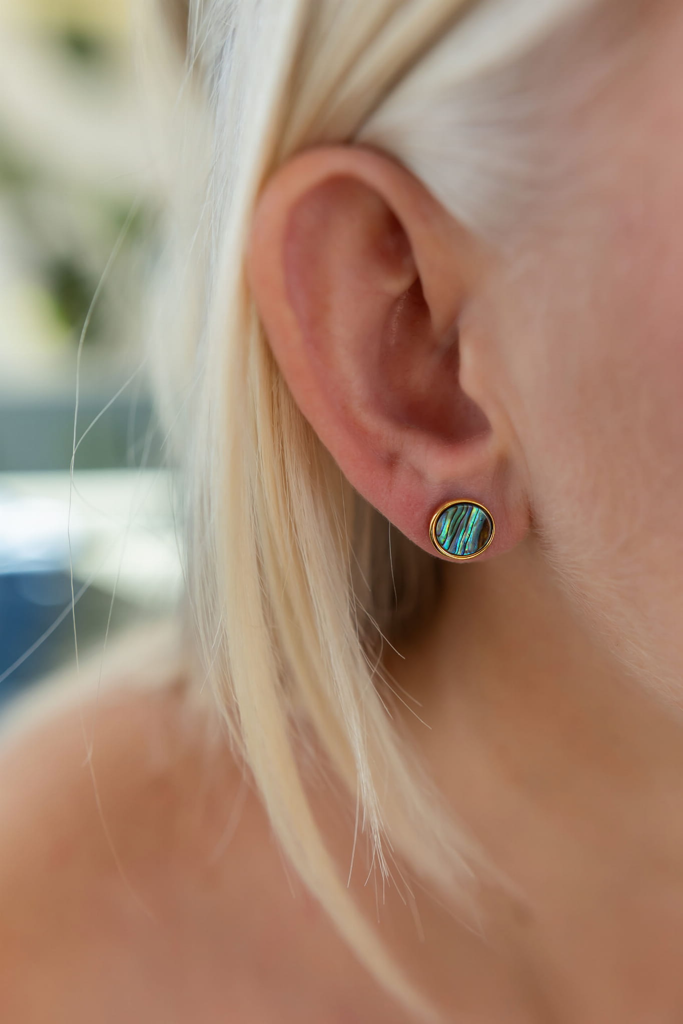 Kolczyki Ocean Glow - hipnotyzujący blask natury Zanurz się w głębi oceanu z kolczykami Ocean Glow, które przyciągają spojrzenia swoją hipnotyzującą grą kolorów. Lśniąca masa perłowa Paua, znana z niezwykłych, opalizujących odcieni turkusu, zieleni i fioletu, zamknięta w eleganckiej, złoconej oprawie, tworzy harmonijną kompozycję. Wykonane ze srebra próby 925, pokryte warstwą złota, które nadaje im ciepły blask i luksusowy charakter. Ich minimalistyczny, ale efektowny design sprawia, że są doskonałym dodatkiem zarówno na co dzień, jak i na wyjątkowe okazje. ✨ Dlaczego warto je mieć?