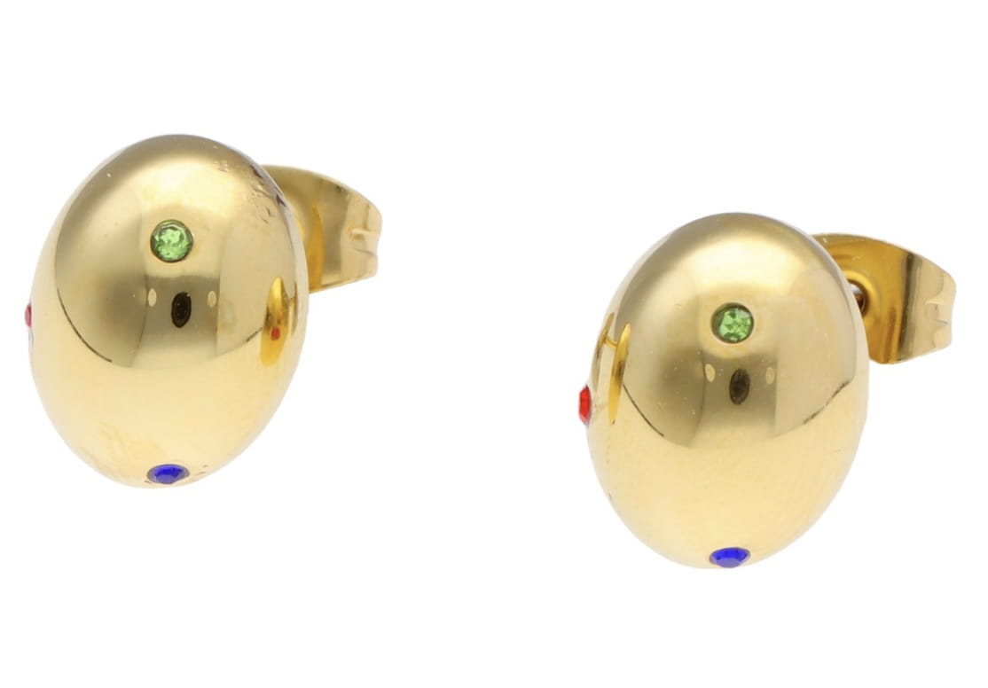 Te unikalne kolczyki w kształcie kul to odważny akcent w każdej stylizacji. Wykonane z wysokiej jakości stali szlachetnej w złotym wykończeniu, ozdobione różnobarwnymi cyrkoniami – zielonymi, czerwonymi i niebieskimi – które dodają im wyjątkowego charakteru. Ich geometryczna forma i połyskliwe detale przyciągają uwagę i podkreślają indywidualny styl.