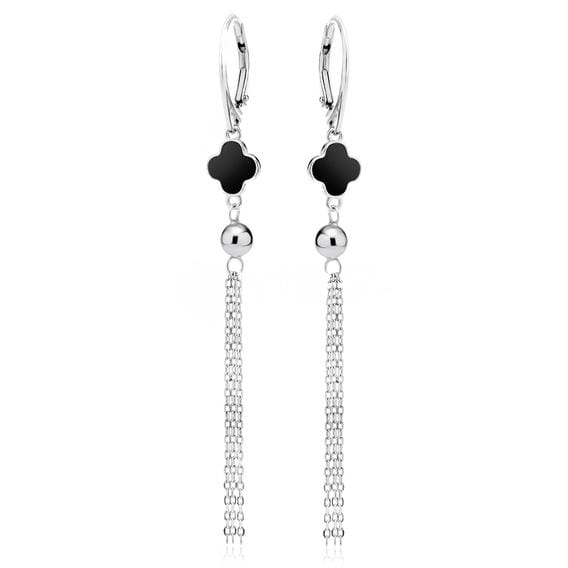 Zanurz się w świecie subtelnej harmonii. Srebro najwyższej próby, pozłacane 14k złotem lub rodowane na chłodny, srebrzysty odcień, łączy się z głęboką czernią emalii, tworząc wyjątkowy duet klasyki i nowoczesności. Wiszące łańcuszki, niczym kaskady światła, dodają lekkości i podkreślają każdy Twój ruch, tworząc aurę tajemniczej elegancji.