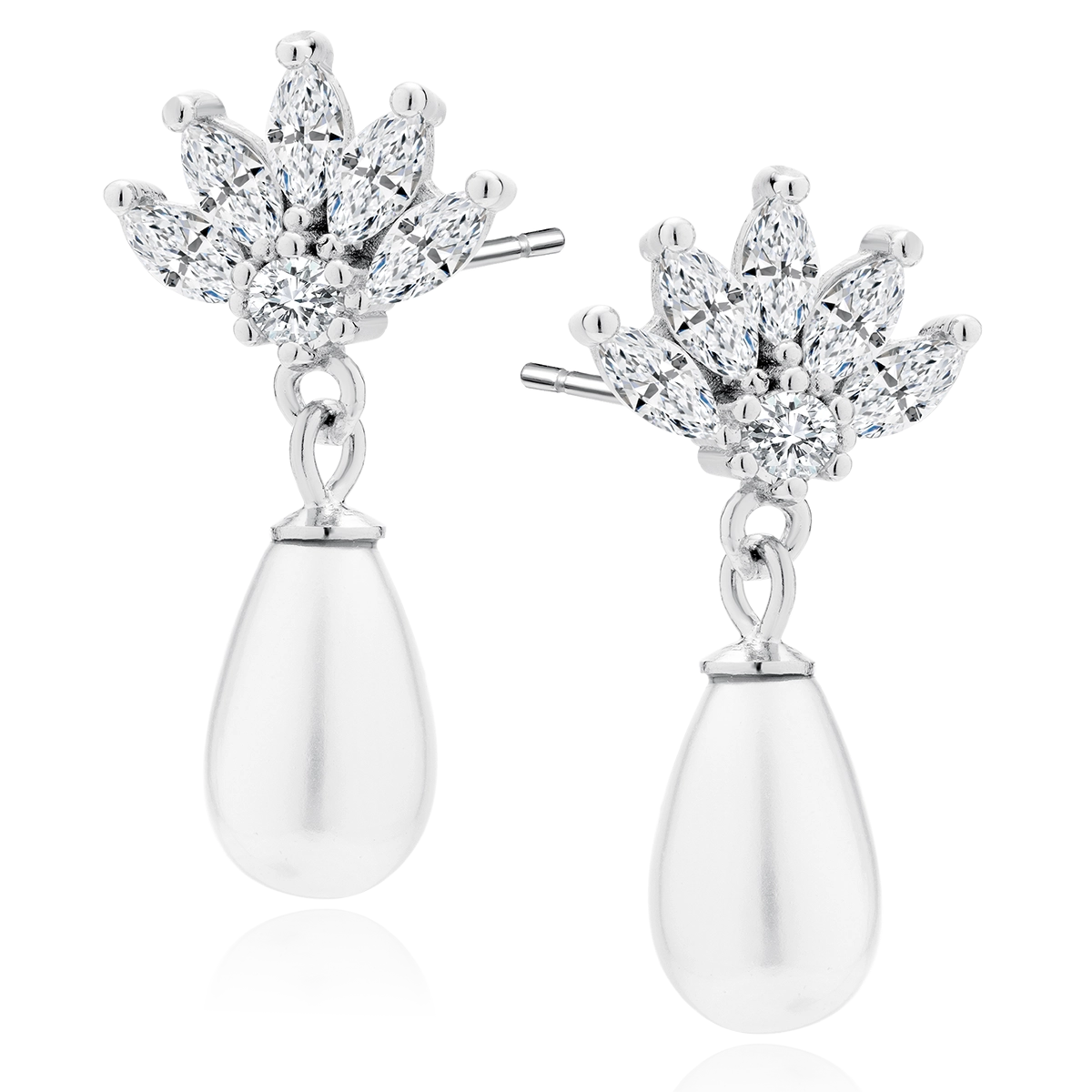 Kolczyki „Royal Pearl” – elegancja i blask w jednym Kolczyki Royal Pearl to połączenie klasycznej elegancji i wyrafinowanego designu. Górna część w kształcie korony, ozdobiona błyszczącymi cyrkoniami, dodaje im luksusowego charakteru. Z kolei delikatna perłowa kropla sprawia, że całość prezentuje się subtelnie i niezwykle kobieco. ✨ Cechy kolczyków: