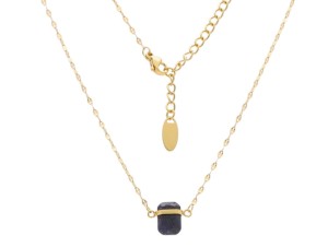 Ten wyjątkowy naszyjnik przyciąga spojrzenia dzięki subtelnemu blaskowi kamienia Noc Kairu – minerału, który emanuje magią i tajemniczością. Granatowe odcienie przeplatane delikatnymi drobinkami tworzą efekt rozgwieżdżonego nieba. Połączenie z eleganckim łańcuszkiem w złotym kolorze nadaje całości wyjątkowego charakteru.