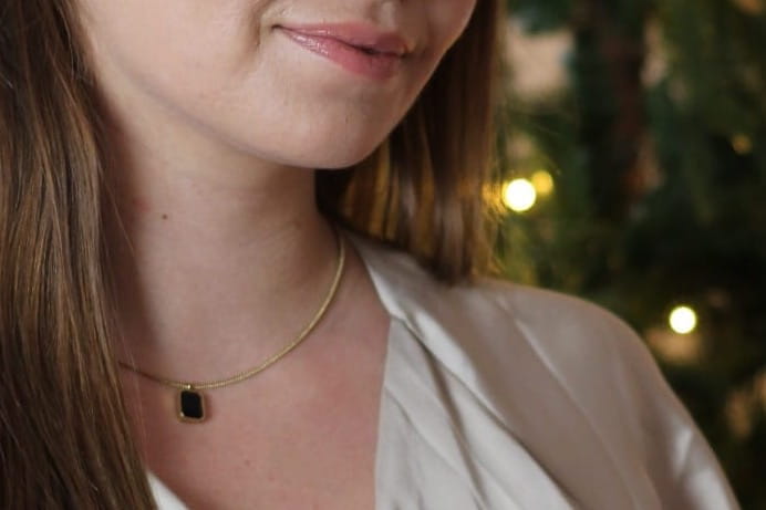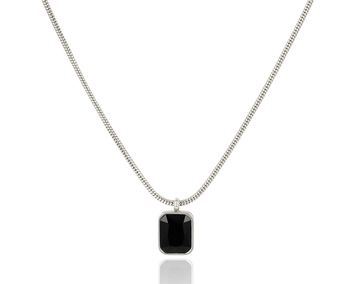 Naszyjnik z prostokątnym, czarnym kamieniem to prawdziwy manifest elegancji. Minimalistyczny kształt połączony z głęboką, tajemniczą czernią wprowadza nutę klasycznej ekstrawagancji, jednocześnie zachowując nowoczesny, subtelny charakter. To biżuteria, która dodaje stylu każdej stylizacji, przyciągając wzrok swoim wyrafinowanym blaskiem. Noszony samodzielnie czy w zestawie – ten naszyjnik jest idealnym wyborem dla kobiet, które cenią prostotę z odrobiną dramatyzmu.