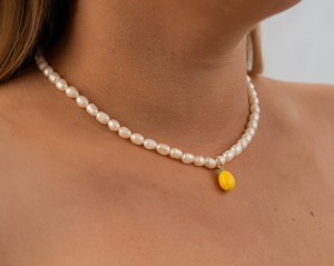 Naszyjnik Limone to połączenie klasycznej elegancji pereł z letnim, radosnym akcentem. Naturalne perły słodkowodne tworzą ponadczasową bazę, a drobna zawieszka w kształcie cytryny dodaje całości świeżości i lekkości.