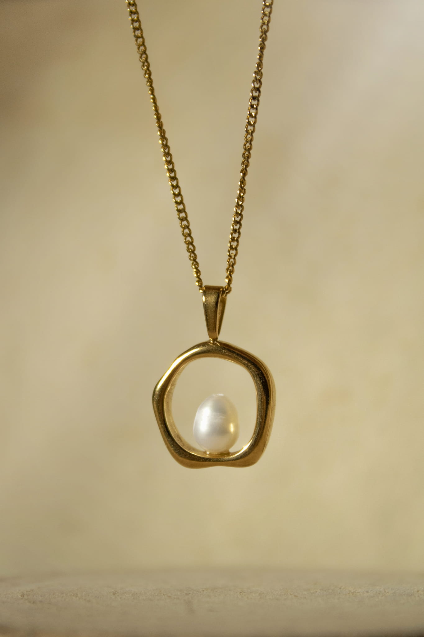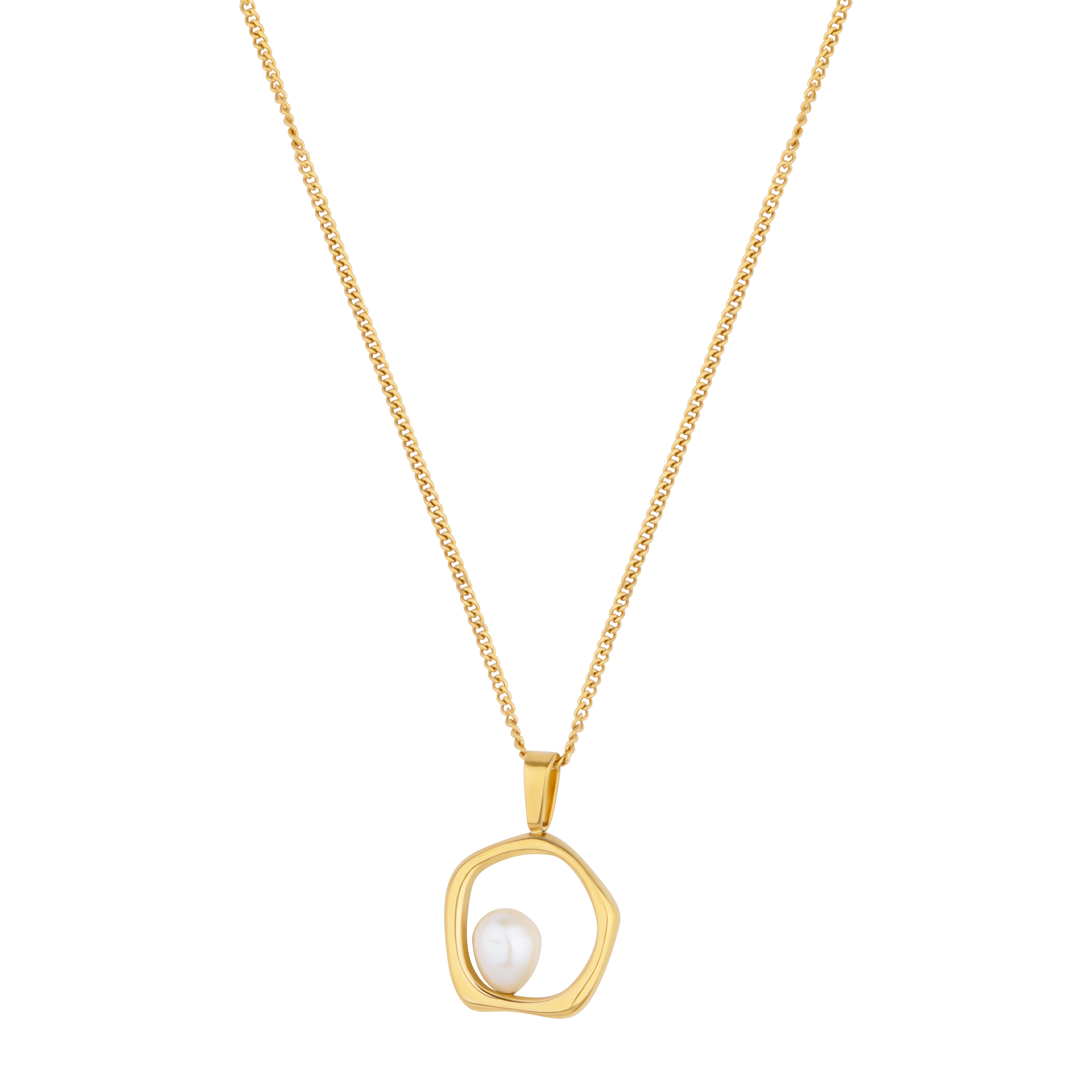 Złoty naszyjnik z perłą w organicznej oprawie