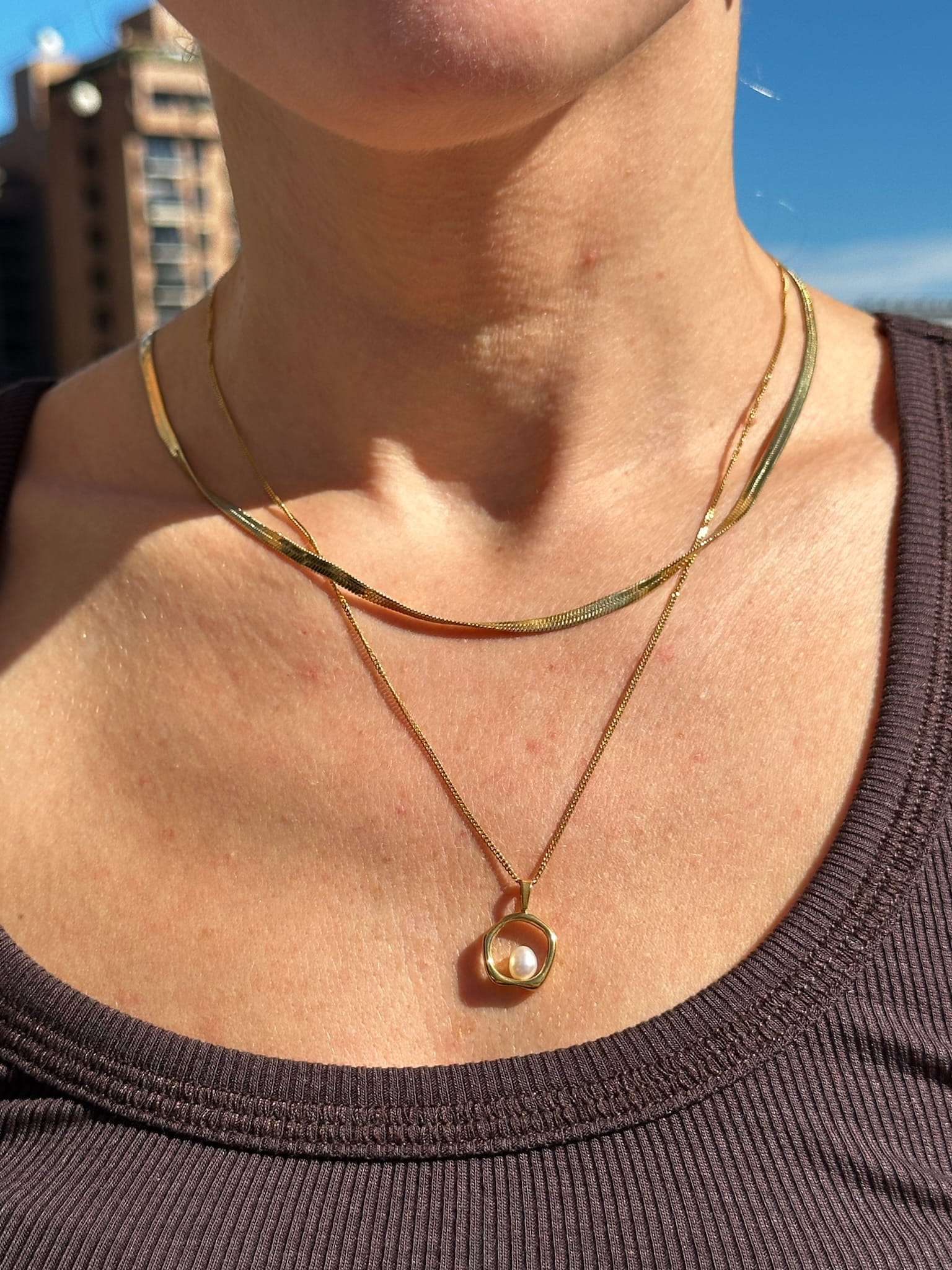 Ten wyjątkowy naszyjnik to połączenie naturalnego piękna perły z elegancją złota. Wisiorek o organicznym kształcie tworzy delikatną ramę dla subtelnej perły, która symbolizuje czystość i ponadczasowy urok. Idealny dla kobiet, które cenią klasykę w nowoczesnym wydaniu. Naszyjnik doskonale komponuje się z różnymi stylizacjami, dodając im odrobinę luksusu i szlachetności. Wybierz ten naszyjnik, aby podkreślić swoją elegancję i wyrafinowany gust!