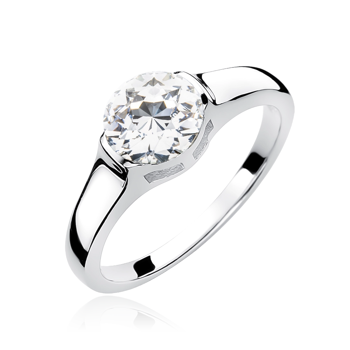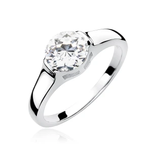 Centralnym punktem jest okazała, perfekcyjnie oszlifowana cyrkonia, która emanuje niezwykłym blaskiem, przyciągając spojrzenia i dodając luksusowego charakteru każdej stylizacji. Delikatne zdobienia na bokach pierścionka dodają mu subtelnego, ale wyrafinowanego uroku.